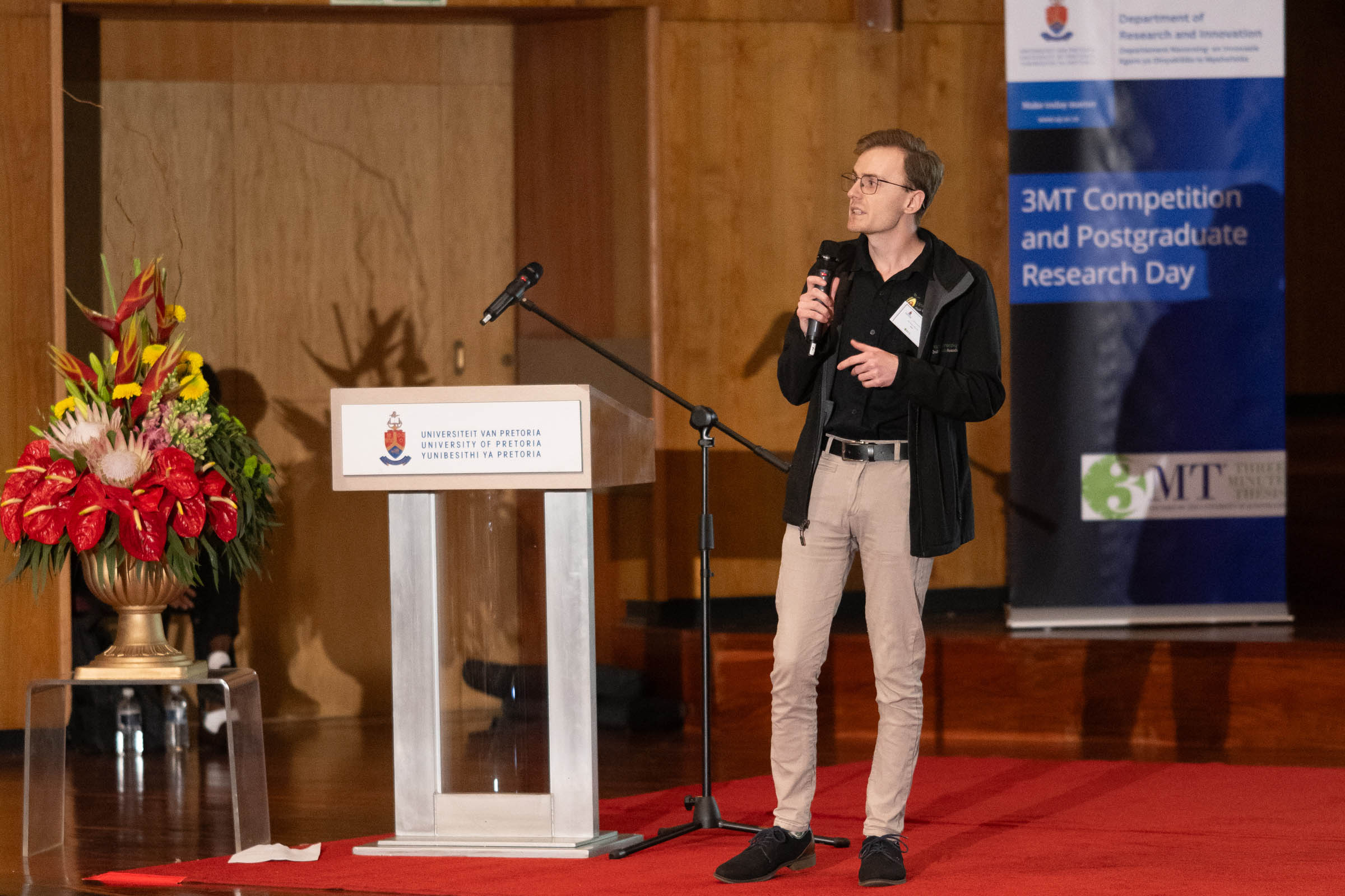 On 29 September, a few PhD students from the Forestry and Agricultural Biotechnology Institute (FABI) stepped onto the Musion stage to take part in something a little different - the University of Pretoria’s Three Minute Thesis (3MT) competition. Originating from the University of Queensland in Australia, 3MT has grown into a global academic event. Its challenge? For doctoral candidates to explain their research in a compelling three-minute presentation, aimed at a general audience with little to no background in their field.