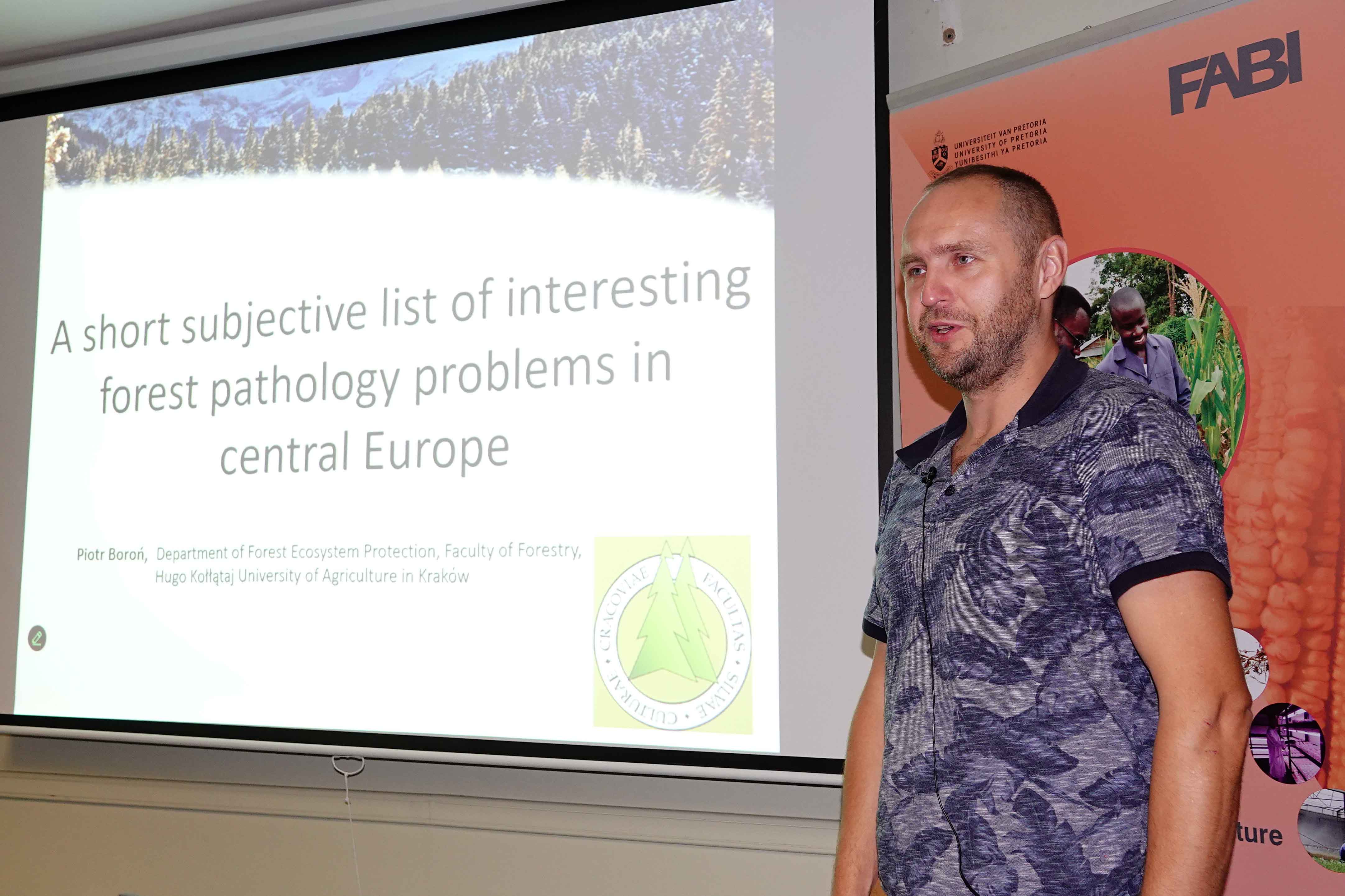 Prof. Boroń presented a special seminar at the FABI Monday Morning Meeting on 6 October entitled: "A short subjective list of interesting forest pathology problems in central Europe". This talk shed light on the severe impact of European Mistletoe (Viscum album L.) on plantation forestry in Poland and demonstrated how climate change exacerbates its impact and facilitates its spread.