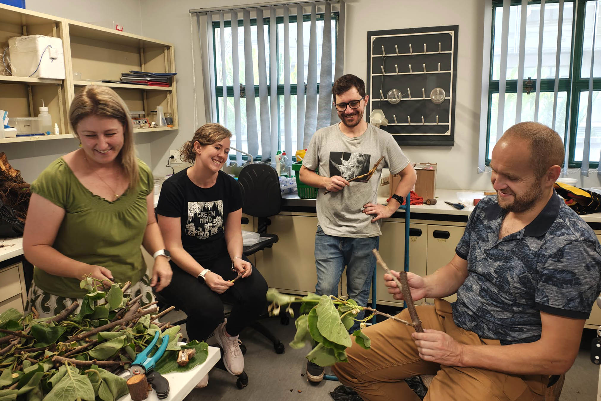 FABI hosted a visit by two collaborators, Prof. Piotr Boroń of the University of Agriculture in Krakow, Poland, and his PhD student Klaudia Bulanda, who recently visited FABI as part of a collaborative research effort on pine needle diseases. Klaudia spent six weeks at FABI working in Prof. Irene Barnes’ group with MSc student, Michané Reutener, studying diseases of Eucalyptus as part of an internship implemented within the project “Raising qualifications and competences of teaching staff and doctoral students in order to enhance the quality of teaching at the University of Agriculture in Krakow”, funded by the European Union as part of the European Funds for Social Development programme. She also attended microsatellite data analysis workshops presented by Postdoc researchers Dr Ariska van der Nest and Dr Firehiwot Eshetu.