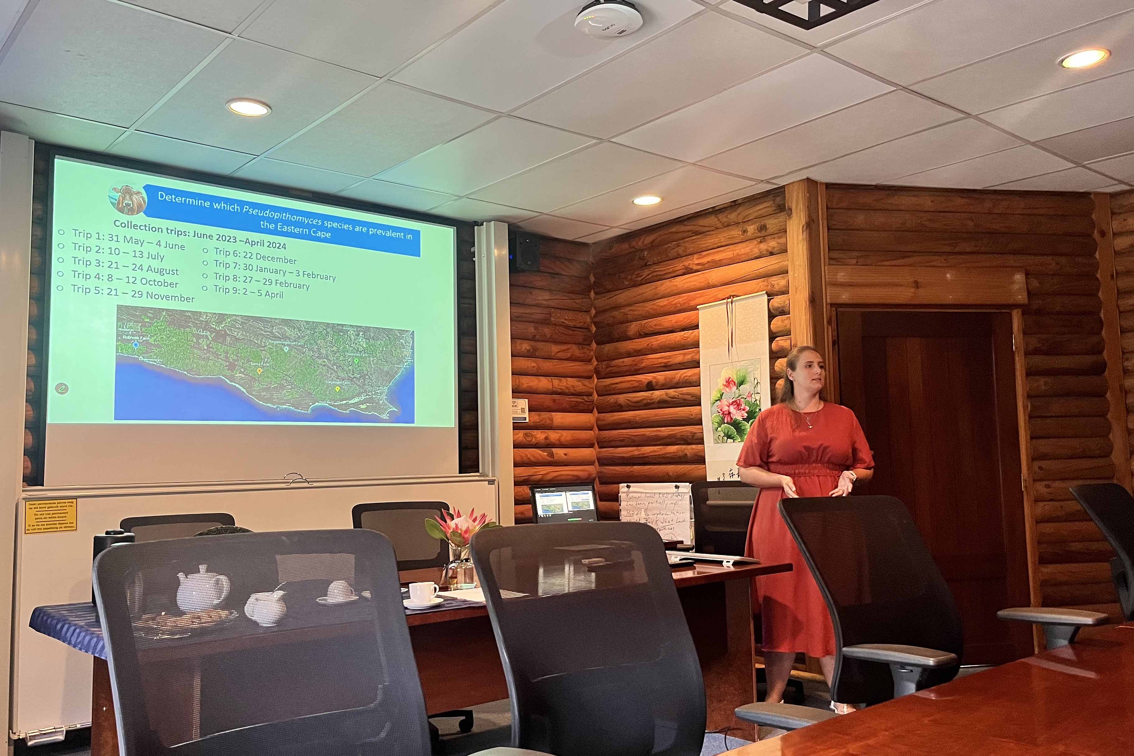 Postgraduate students Ms. Jenna-Lee Price (PhD) and Ms Unathi Tshabalala (MSc) reported on their respective projects, including seasonal occurrence of P. toxicarius, biosynthetic gene cluster of Sporidesmin A, and chemotaxonomy of the genus. Ms. Price also presented the outcomes of Ms. Pearl Nkosi’s Honours project, which contributes to ongoing work on population genetics assessment.