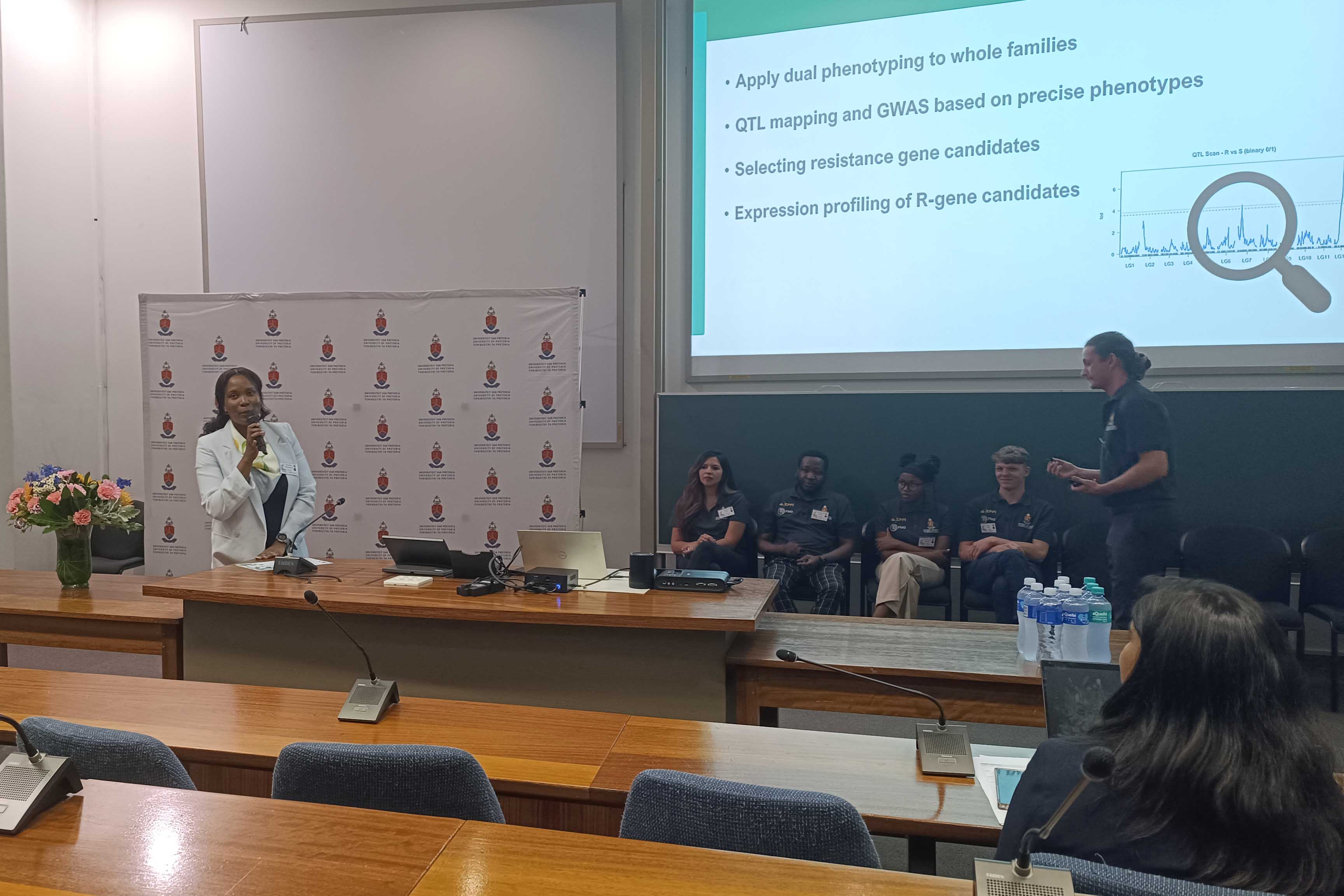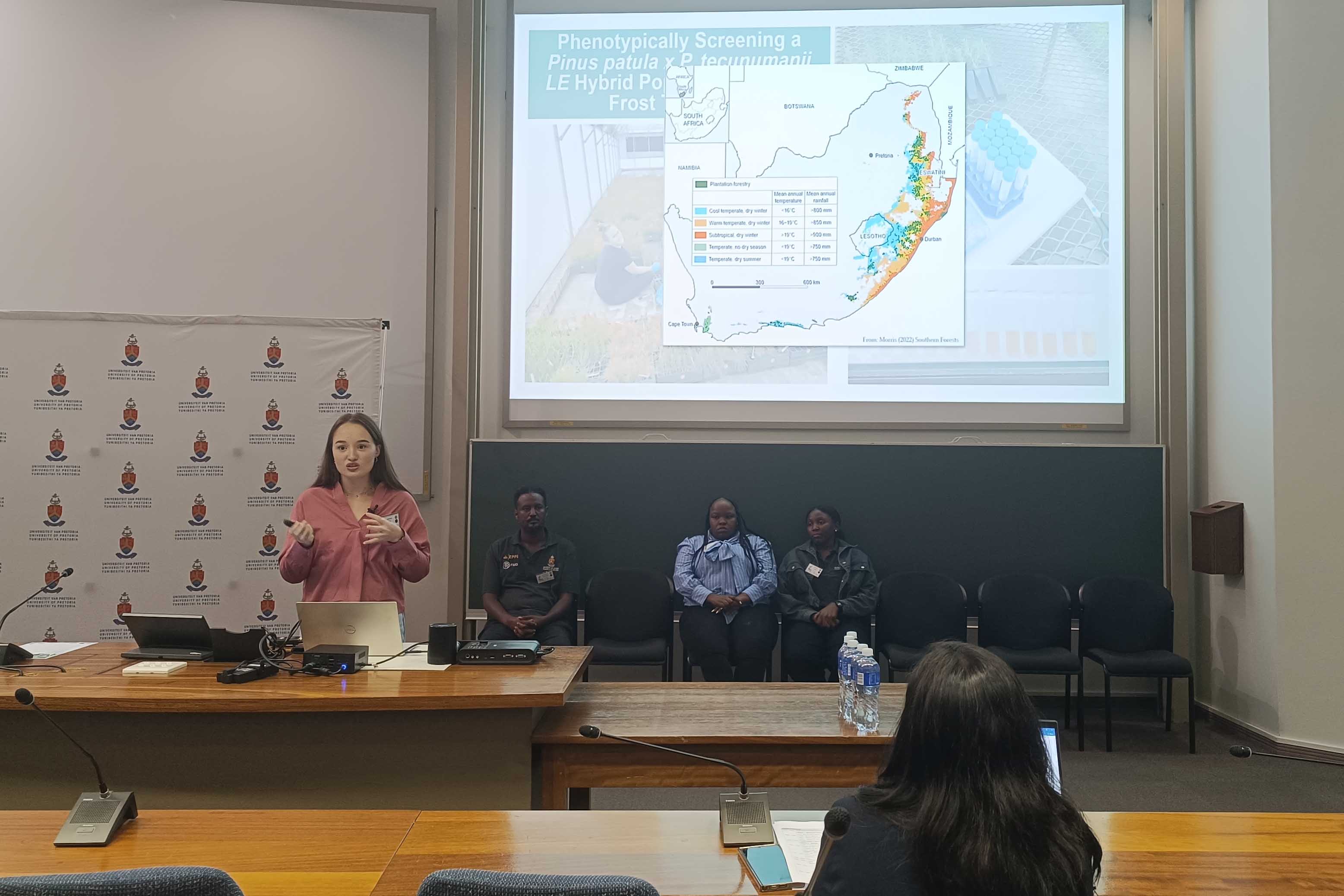 Several thought-provoking plenary talks included contributions from academic, industry and international collaborators. Dr Rian Pierneef (University of Pretoria’s Department of Biochemistry, Genetics and Microbiology (BGM)) delivered a presentation on the endless possibilities of bioinformatics, showing the role computational tools play in resolving challenges across forest science. Guest speaker Mr George Dowse (Hans Merensky Timbers) provided an industry perspective on the current challenges and future opportunities in forestry, particularly in the face of climate change. His talk highlighted the need for strong research - industry and industry - community partnerships in adapting to the rapidly changing environment. Prof. Caterina Villari, Associate Professor in Forest Pathology at the University of Georgia’s Warnell School of Forestry and Natural Resources, presented an overview of her team’s pioneering work using near-infrared spectroscopy (NIRS) analysis in Loblolly pine as an early-diagnostic tool.