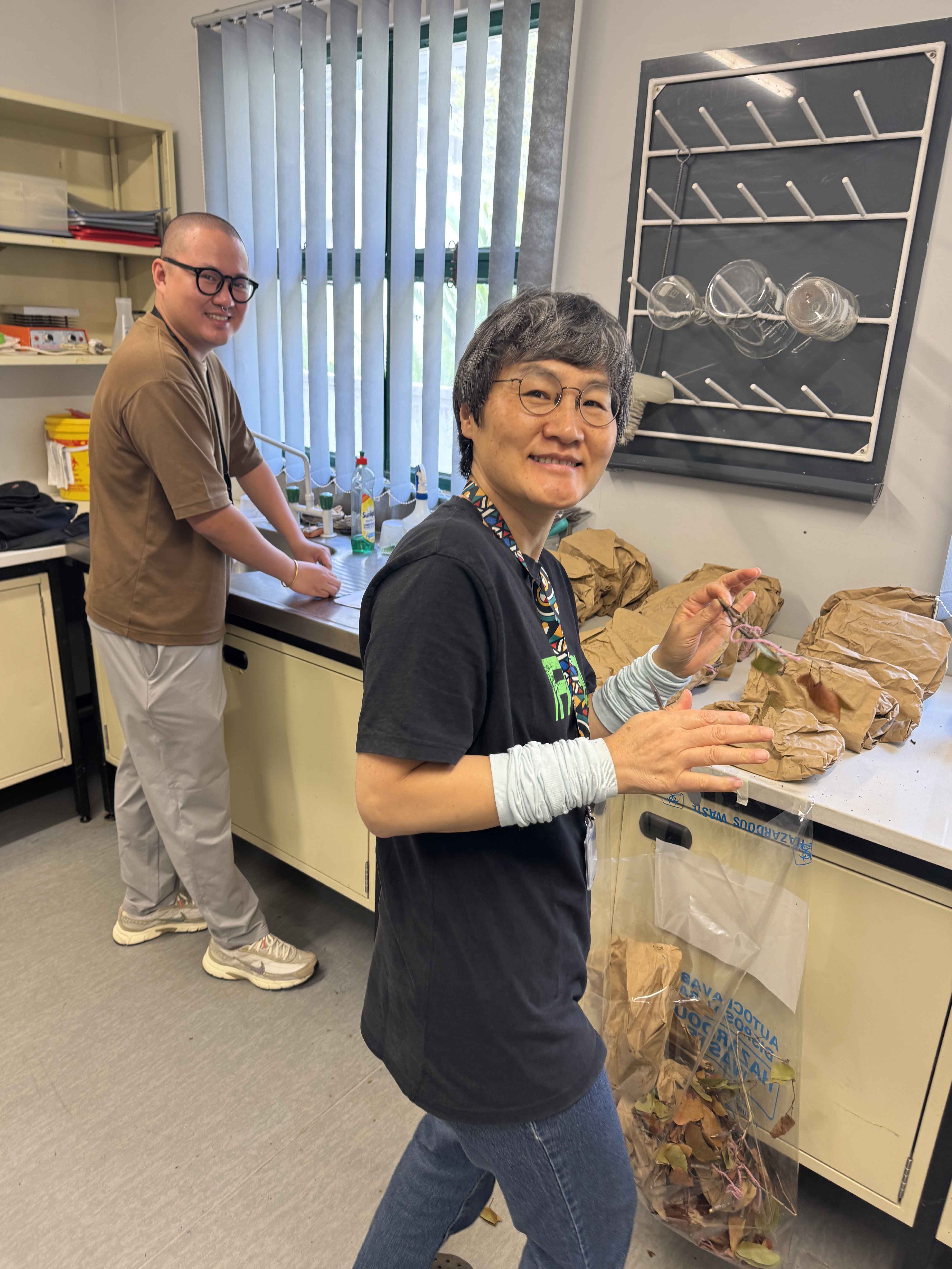 The 2021 Harry Oppenheimer Fellowship Award from the Oppenheimer Memorial Trust to FABI’s Prof. Mike Wingfield catalyzed a concerted effort to collect and characterize yeasts associated with the fungal human pathogen, Cryptococcus neoformans. One of these yeasts, Cryptococcus wingfieldii, first described by Prof. Johannes van der Walt in the genus Sterigmatomyces, has been found living in close association with wood boring beetles, notably in the genus Lanurgus. Thus far, these yeasts have all been found in cooler parts of South Africa prompting a search for them in the warmer sub-tropical parts of the country. A target tree in these investigations is the well-known Mopane (Colophospermum mopane). Prof. Coert Geldenhuys, a well-known retired forest ecologist and extraordinary Professor at the University of Pretoria has assisted the team in collecting dying Mopane twigs from which wood boring beetles have been collected. With the help of FABI’s Dr Seonju Marincowitz and Dr Nam Pham, isolations from these beetles are underway in the hope of discovering additional yeast species and possibly extending knowledge relating to fungi in the environment that could be of medical relevance. Some background to this broader initiative can be found here.