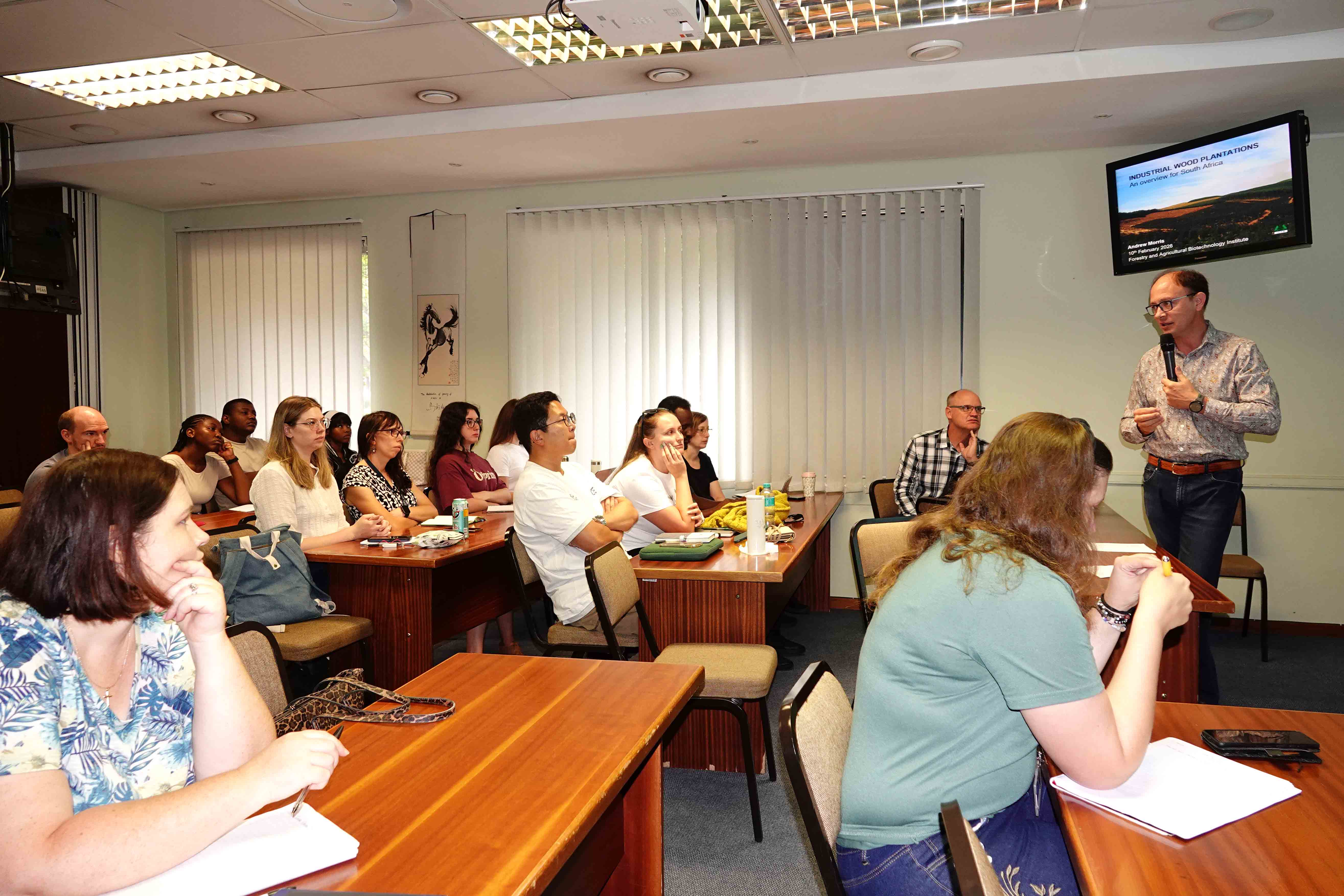 Dr Andrew Morris presents an introduction to forestry course in FABI 2026-02-12