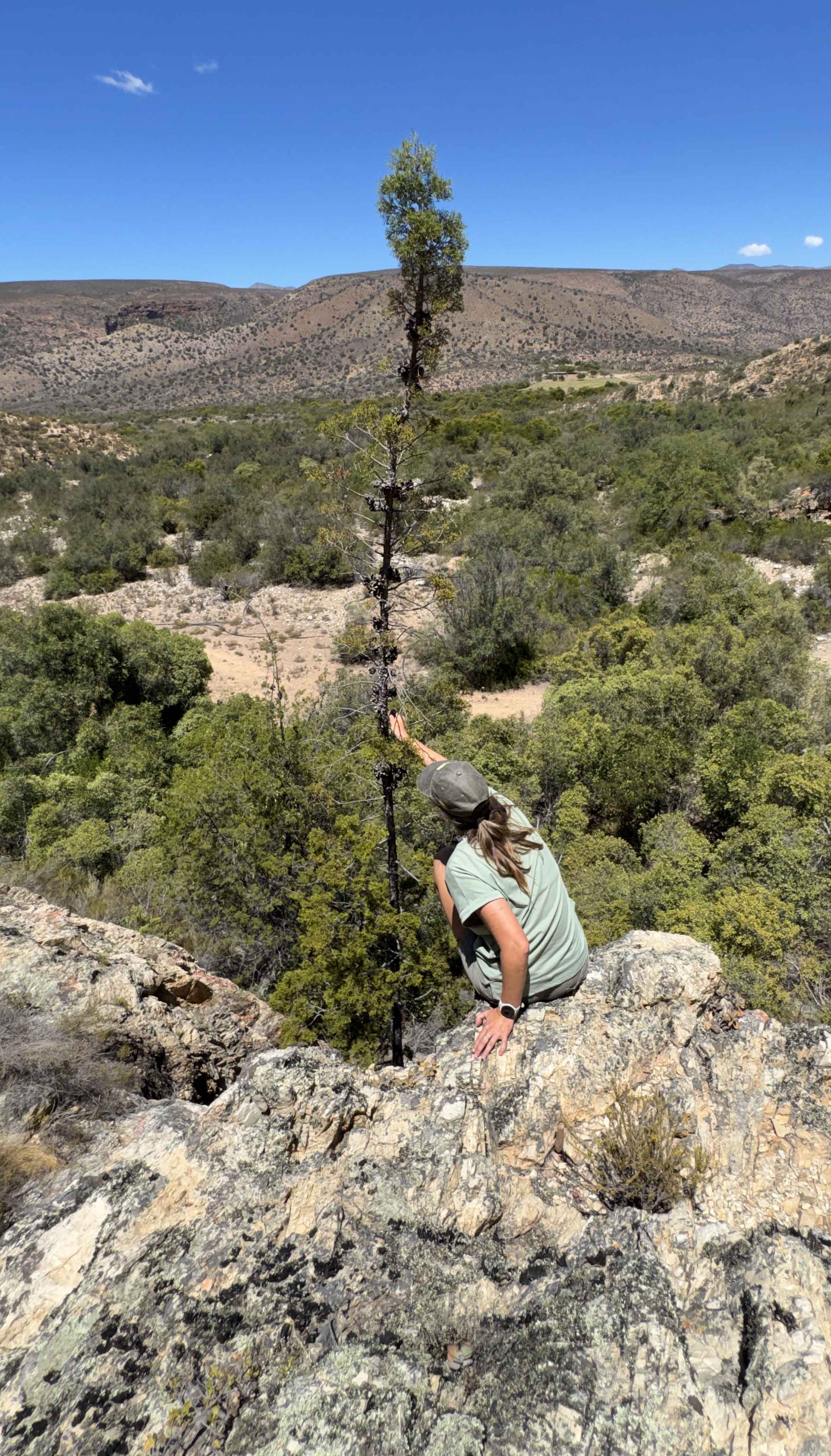 During late January, Professors Mike and Brenda Wingfield visited the Baviaanskloof area as guests of Living Lands and the Baviaanskloof Hartland Bewarea, with support especially from Justin Gird, Emily Lazenby and Luyanda Luthuli. The visit was exploratory in nature and part of a project considering the fungi associated with wood boring beetles on native Cupressaceae including species of Widdringtonia. Previous studies on these beetles on the Clanwilliam cedar, Cupressus cedarbergensis have led to the discovery of a number of species of Cryptococcus related to Cryptococcus wingfieldii and close relatives of the important human pathogen Cryptococcus neoformans. In this regard, the Baviaanskloof is particularly interesting as this area is home to Widdringtonia schwarzii, one of only three species of the genus occurring in South Africa. Other than an interest in Cryptococcus species associated with Widdringtonia, these trees are threatened by microbial pathogens such as the root-infecting Phytophthora cinnamomi and canker pathogens in the genus Seiridium, all of interest to research projects in FABI.