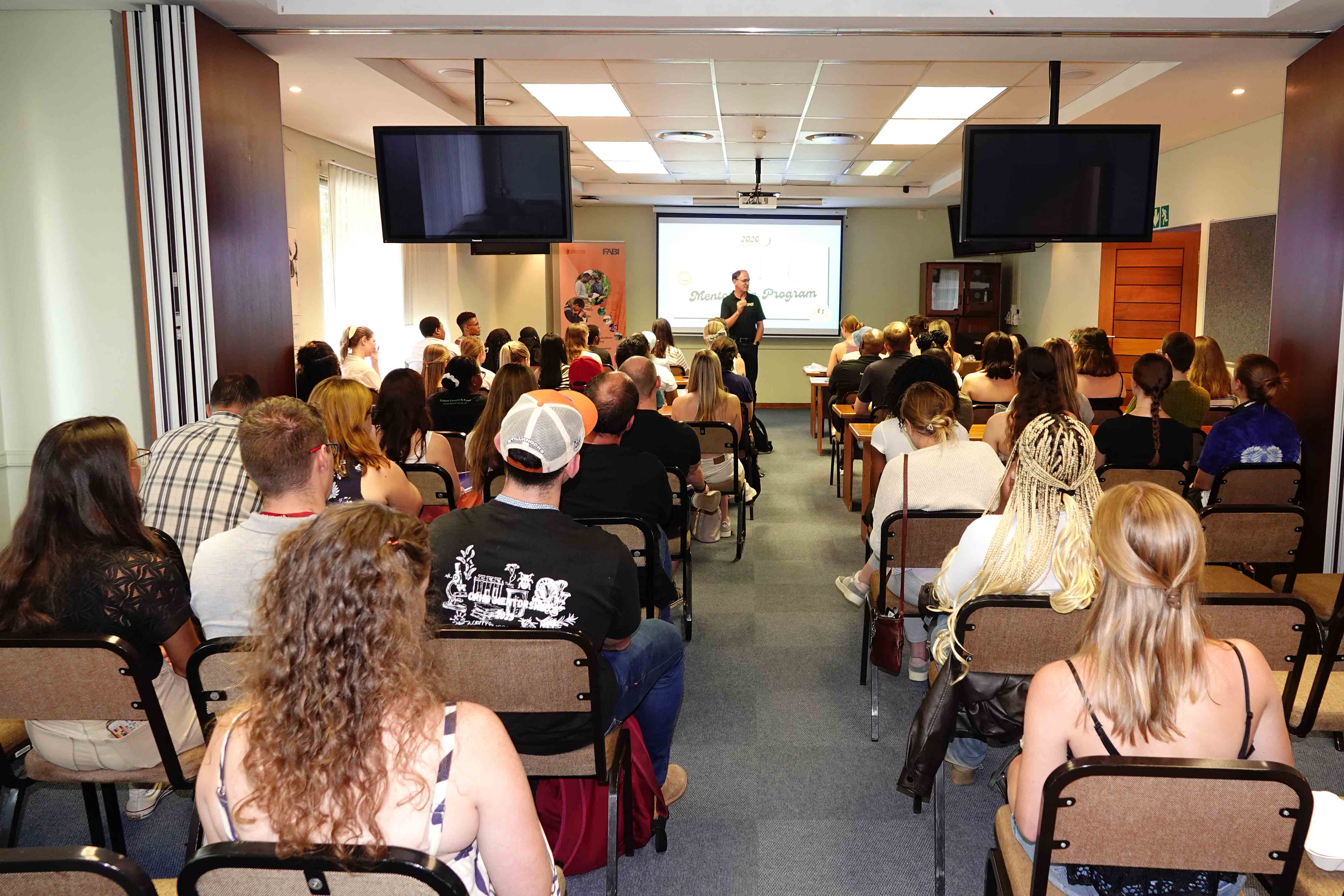 In his welcoming address, FABI Director Prof. Bernard Slippers expressed his gratitude to the FABIans who volunteered their time, emphasizing that the programme is a mutual learning journey for both mentors and mentees. He noted that while technology continues to evolve rapidly, the human element of guidance and support remains irreplaceable. Prof. Slippers reminded the students that having a guide on one's academic journey is essential, concluding that "AI can never replace mentorship."