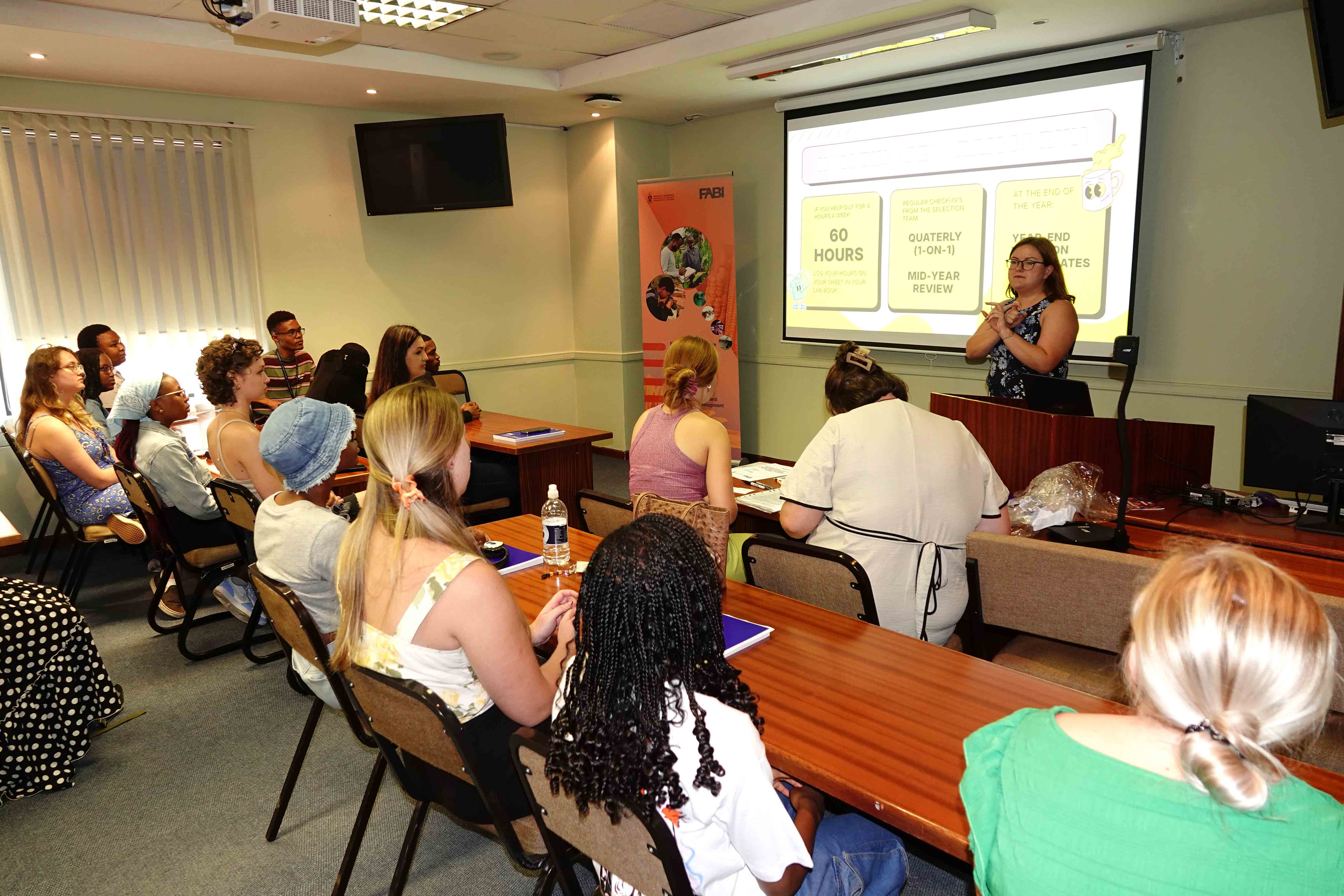 The welcoming event was a high-energy affair that traded a traditional orientation for a more interactive experience. To foster immediate connections, the organisers sent the new intake on a lively scavenger hunt. The students were tasked with navigating the FABI grounds to "hunt" down their respective mentors, turning the introduction into a spirited afternoon of networking and discovery. This year’s cohort represents a vibrant cross-section of the biological sciences, drawing talent from the Department of Biochemistry, Genetics and Microbiology (BGM), the Department of Plant and Soil Sciences, and the Department of Zoology and Entomology.
