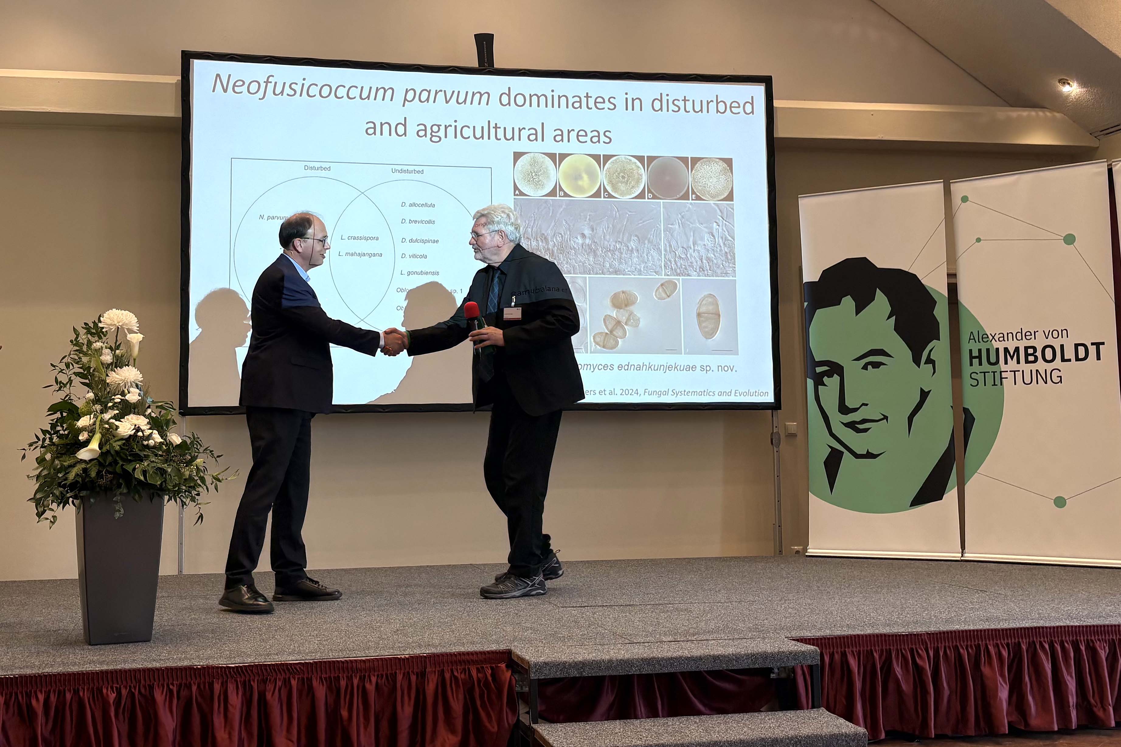 Bernard presented a seminar on the plight of global forests under pressure from invasive pests and pathogens, and climate change, specifically about the 'Silent Threats: How latent pathogens reshape forest health in a changing climate'. He says that was an honour to receive the Humboldt Research Award as part of the Germany Global Minds initiative during the event and that he was deeply inspired by this symposium and the Alexander von Humboldt foundation and community in general. The central thesis of the work of the namesake of the foundation was that 'everything is interaction'. Bernard says that this spirit was alive at the meeting and is extremely relevant to today's world.