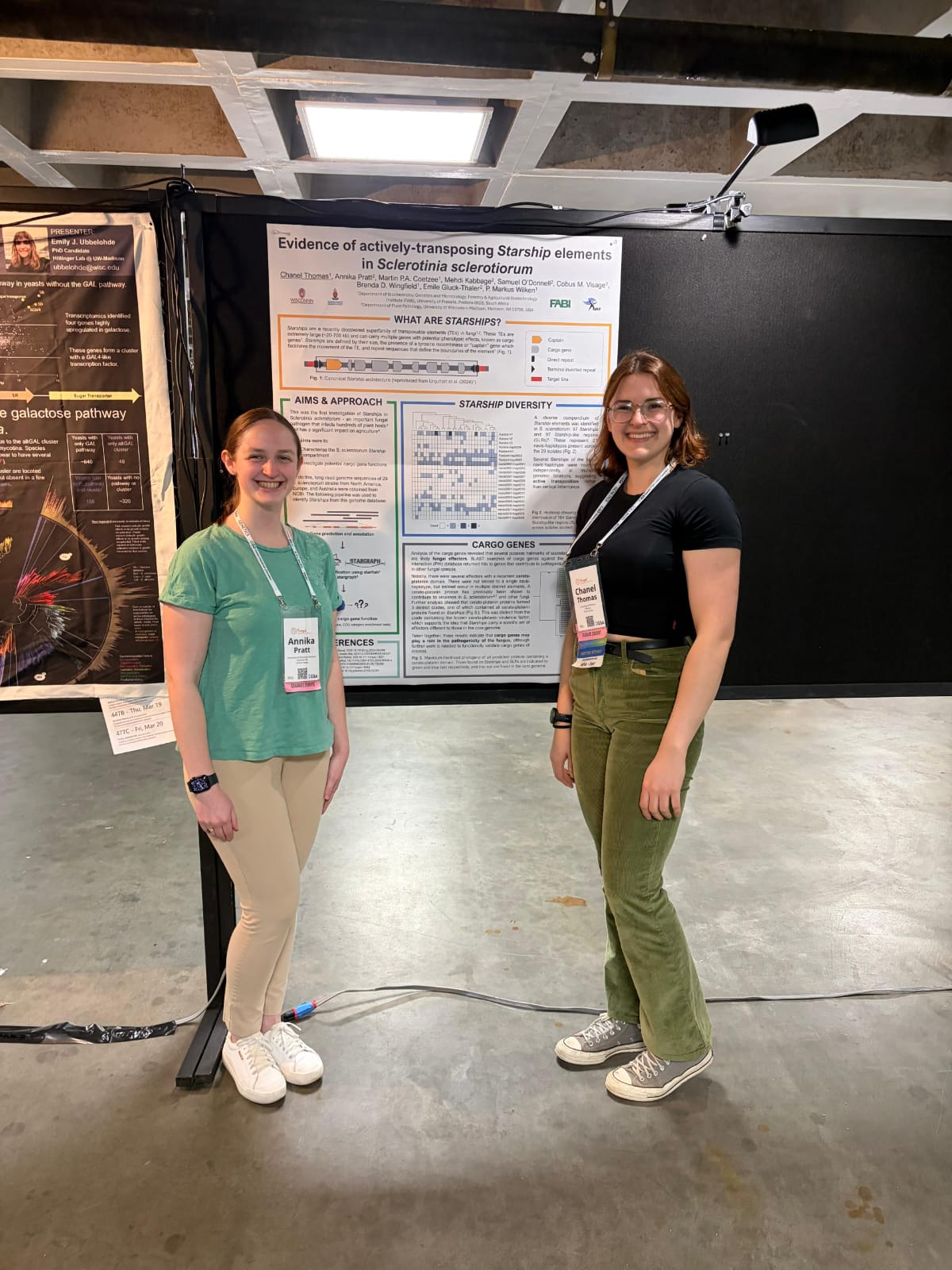 The visit was the result of ongoing collaboration with Dr Emile Gluck-Thaler and his group, who are investigating Starships, an emerging class of transposable elements with important implications for genome evolution. In addition to working on joint publications, Chanel presented a seminar at the Fungal Biology Supergroup titled “From species boundaries to population dynamics: What can genomics reveal in a fungal pathogen?”, highlighting the application of population genomics approaches to understanding pathogen diversity and evolution. Chanel was also hosted by Prof. Anne Pringle, further reinforcing established ties between FABI and the University of Wisconsin-Madison.