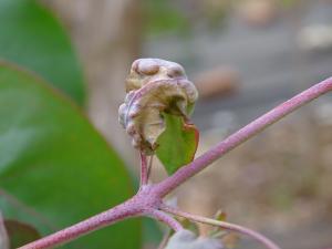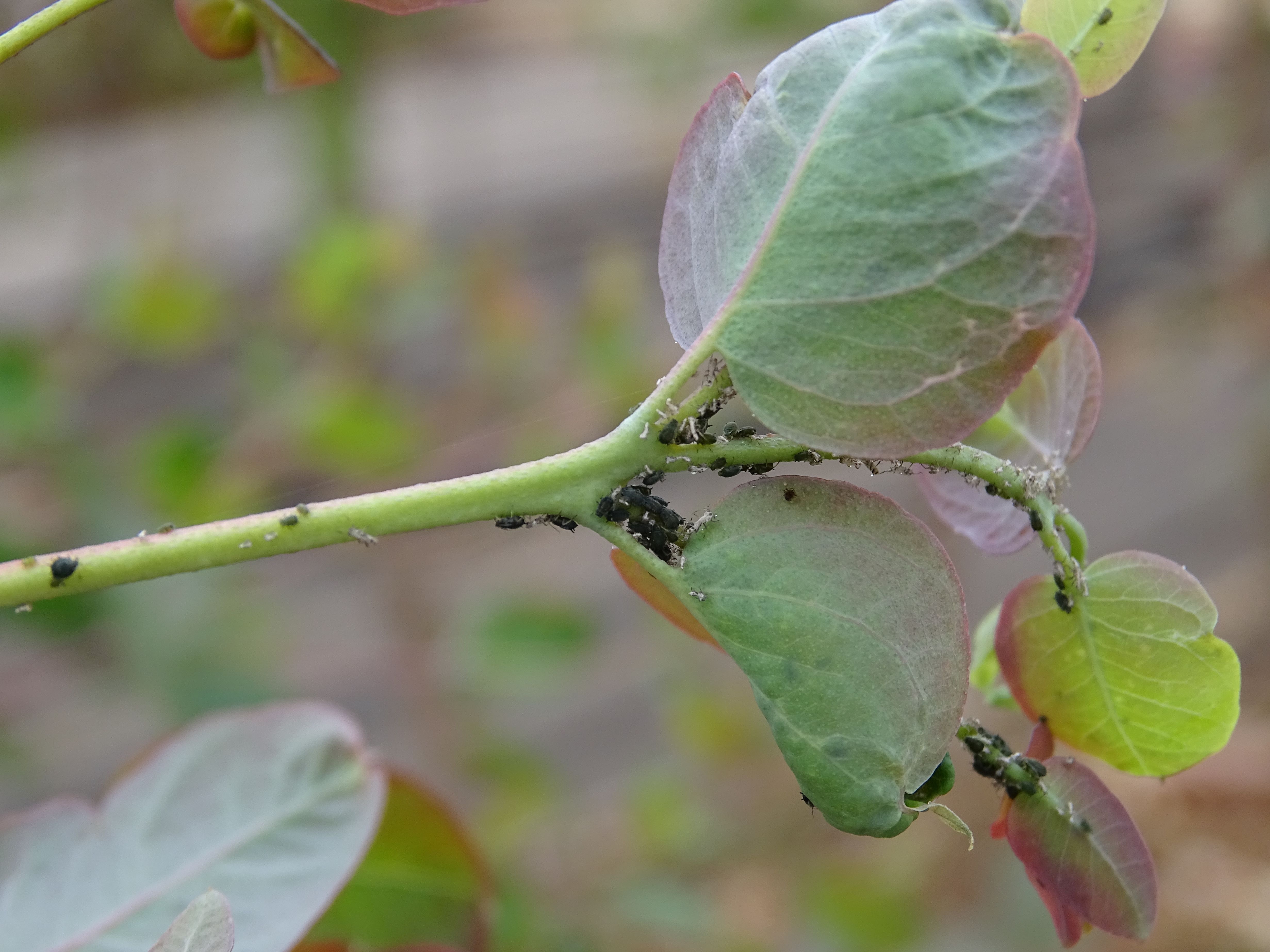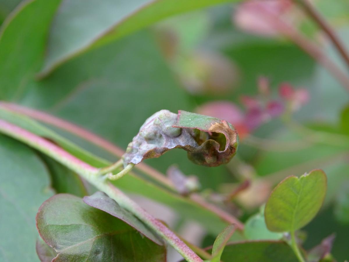 Aphis gossypii primarily infests young Eucalyptus trees, including seedlings and saplings in nurseries and newly established plantation compartments. Damage to the trees occurs both directly through aphid feeding and indirectly via sooty mold growth, which develops as a result of honeydew excreted by the aphids. Feeding activity can cause leaf discoloration and die-back. During severe infestations, premature leaf drop, leaf curling, malformation, and stunting may occur due to damage to primordial leaves. The ability of plants to recover from infestation depends on their overall vigor and stress levels.